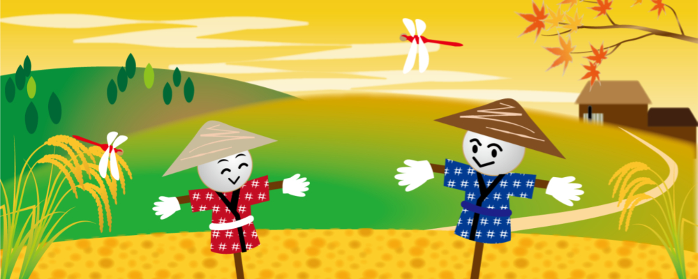 やじろべーかかしのサイトでは、「かかし」の写真やイラストを中心に、おもしろい一言を吹き出しにして紹介しています。